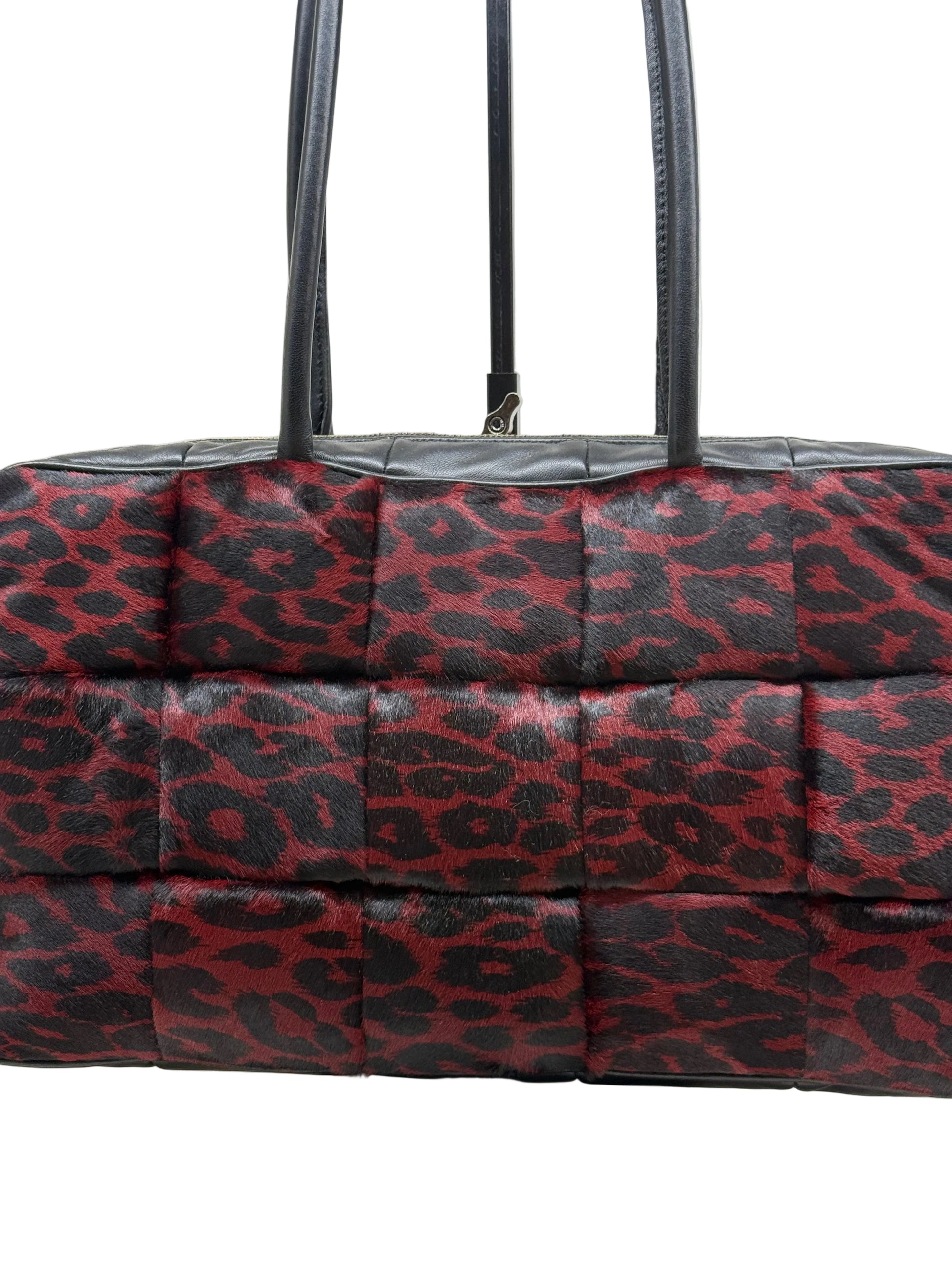 Coapiente, geometrica e dal carattere deciso:questa borsa rettangolare combina linee pulite e pannelli uniti per un look moderno e funzionale. Il cavallino effetto leopardo aggiunge personalità, mentre i manici lunghi ne fanno un accessorio pratico e distintivo, perfetto per accompagnare la quotidianità con una marcia in più.