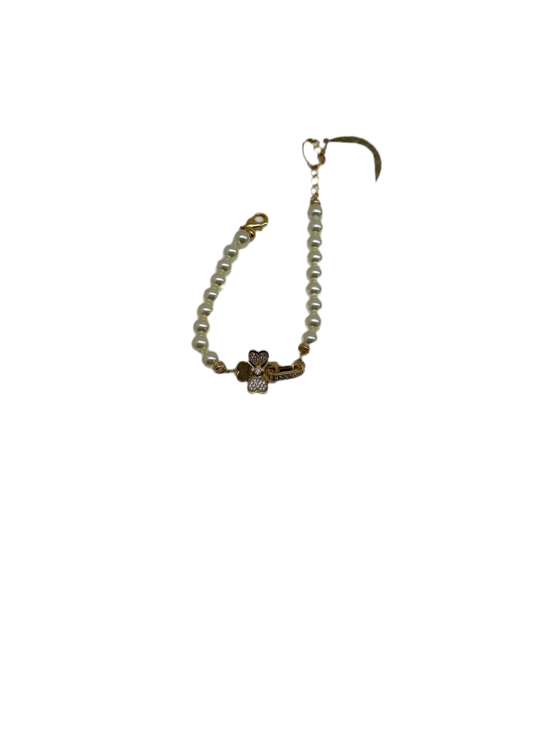Braccialetto perle con portafortuna , dal design raffinato e senza tempo. Realizzato in ottone rodiato a micron oro, è impreziosito da zirconi luminosi che donano un tocco di eleganza e brillantezza.