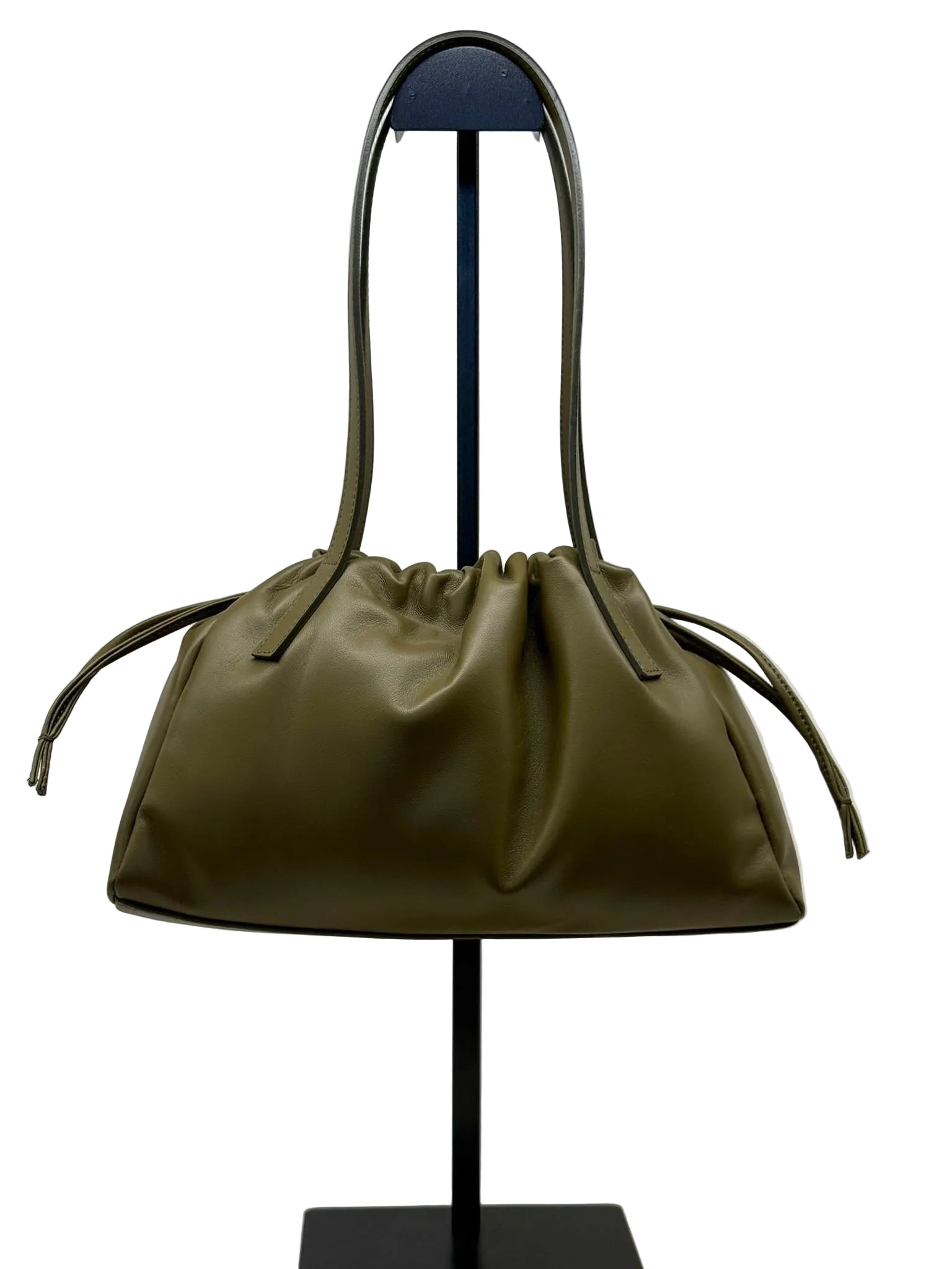 Elegante e versatile, questa borsa di colore oliva incarna uno stile raffinato con un tocco di carattere. La lavorazione aggiunge profondità e texture, mentre il manico in pelle conferisce un accento sofisticato. Perfetta per chi cerca un accessorio distintivo, capace di adattarsi con classe a diverse occasioni.