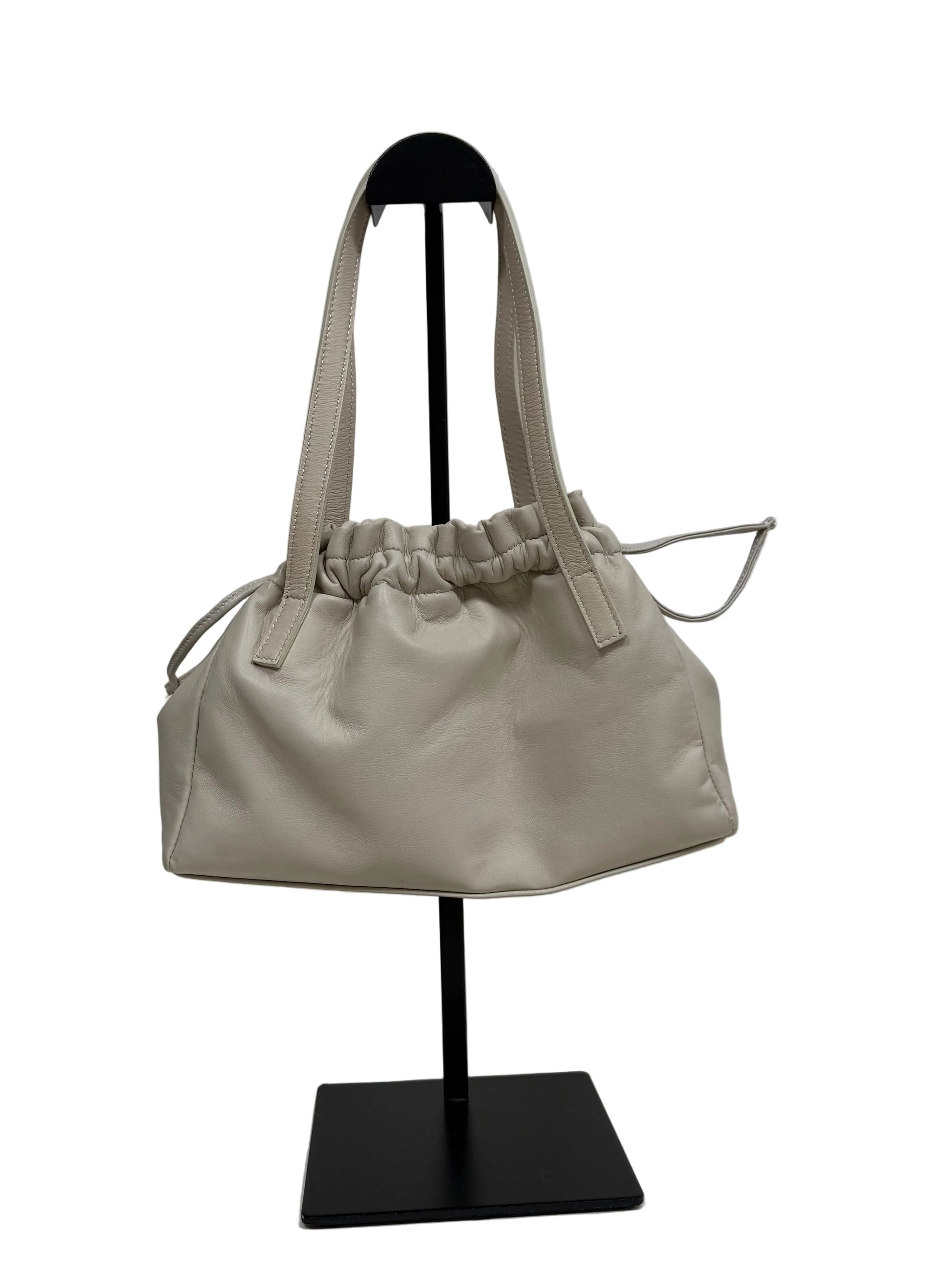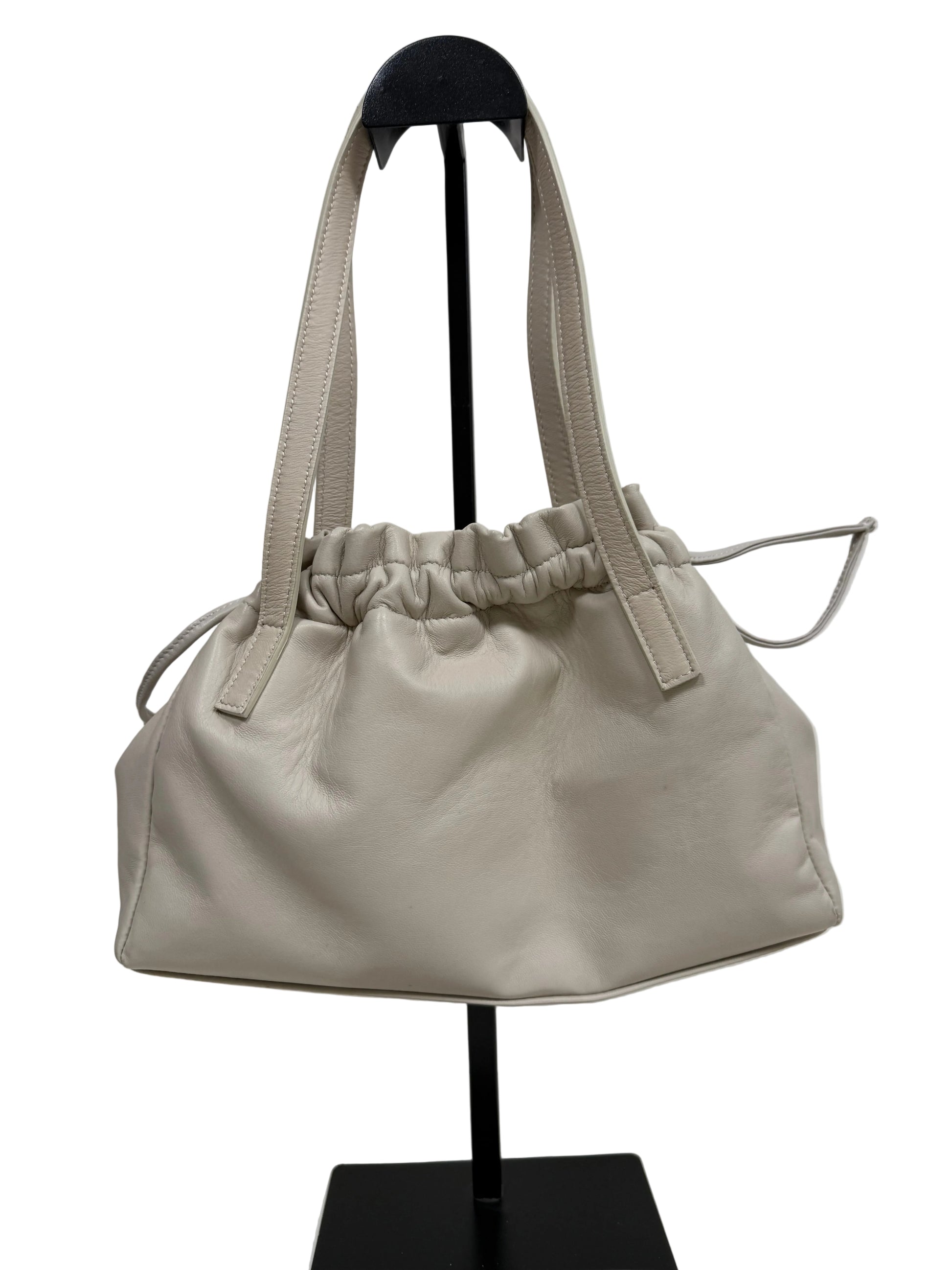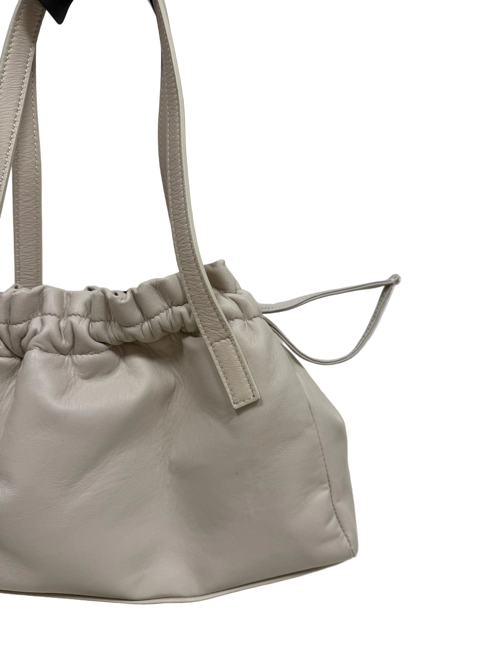 Borsa in pelle bianca neutra, dal design essenziale e senza tempo.