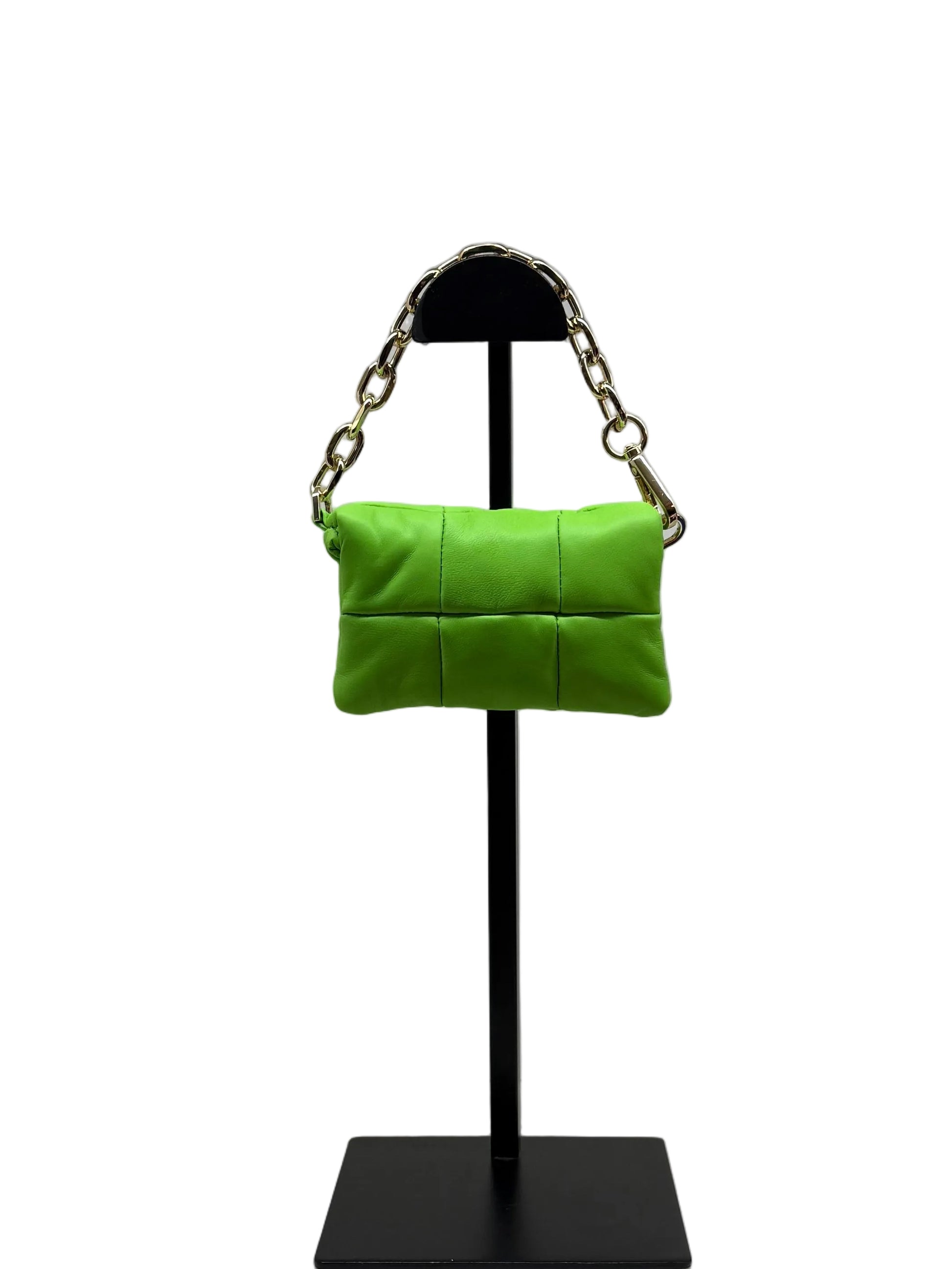 Con la nostra Mini Tancredi fluo Green, il colore super cool si unisce alla funzionalità di una mini pochette a polso. Porta con te l'essenziale con stile, grazie al nostro design elegante e moderno. La perfetta combinazione di colori e praticità per un look unico e sofisticato.