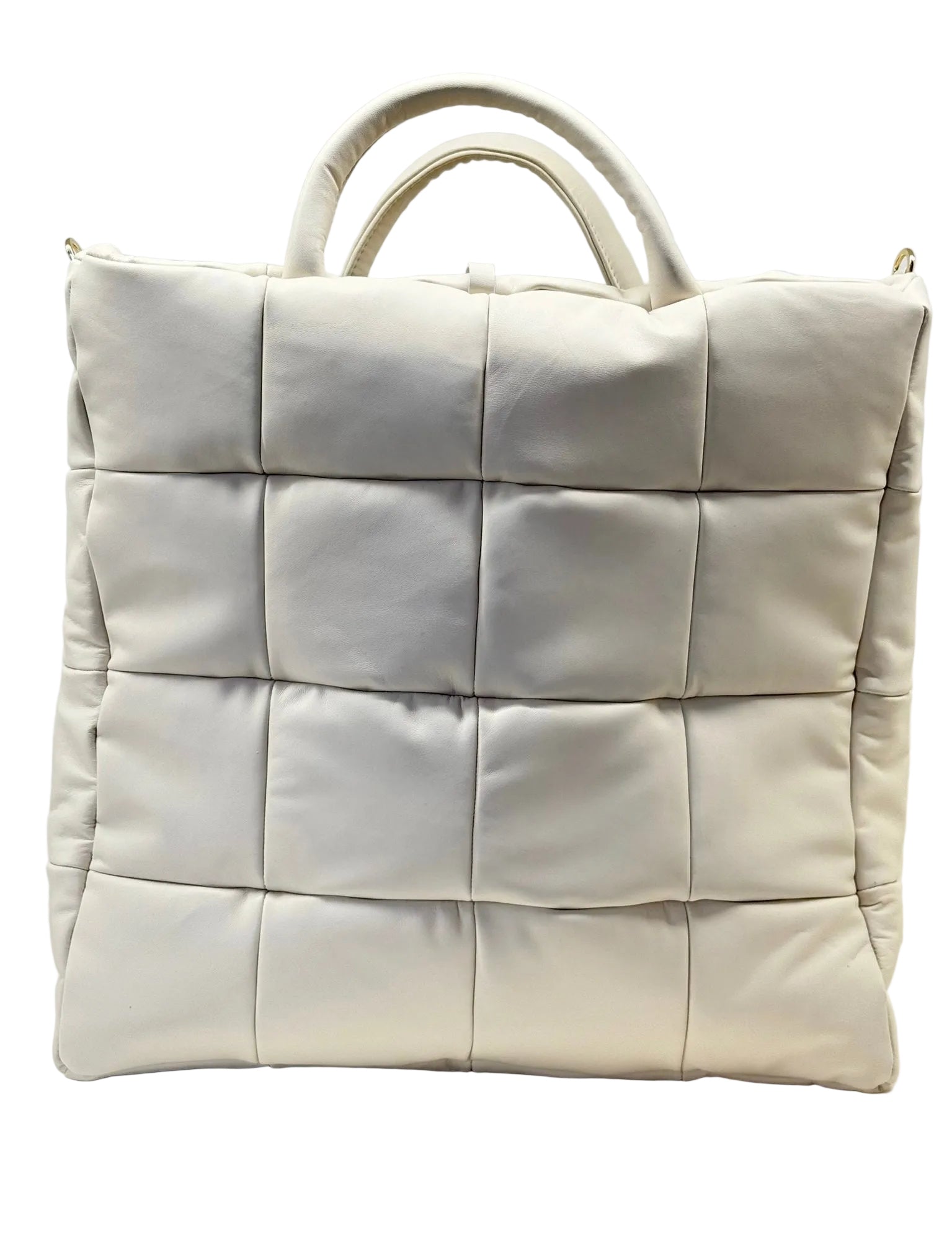 Un bianco puro che incarna raffinatezza e versatilità: questa borsa a dadi con è sinonimo dell’eleganza senza tempo. La pelle morbida dona un effetto visivo sofisticato e un comfort tattile, mentre la catena dorata, con le sue maglie ben definite, aggiunge un tocco di luminosità e preziosità. Compatta e strutturata, è l’accessorio perfetto per chi cerca uno stile classico con un accento moderno, ideale per completare qualsiasi look con discrezione e classe.