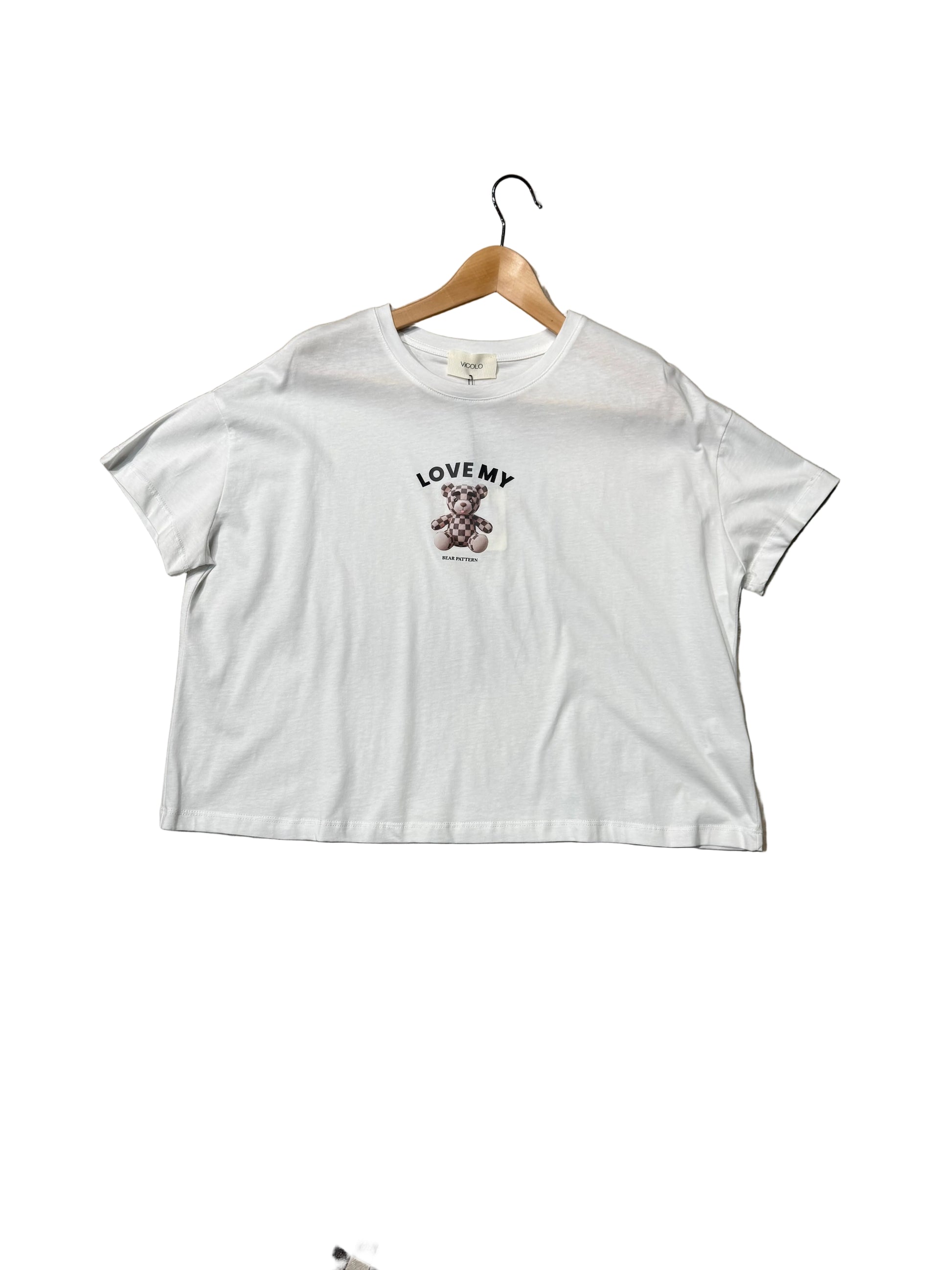 La T-shirt Vicolo in morbido cotone è impreziosita da una simpatica stampa con orsetto, perfetta per aggiungere un tocco giocoso ai tuoi look quotidiani. Facile da abbinare a jeans, gonne o pantaloni sporty-chic, è un must-have per la stagione.